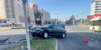 Машина снесла светофор на ул. М. Богдановича